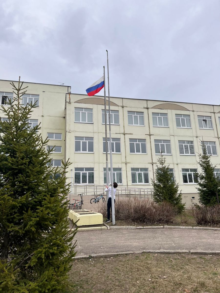Сегодня в школе прошла торжественная линейка с поднятием флага и исполнением гимна России. Церемония поднятия флага – новая инициатива общественности, которую поддержал президент РФ Владимир Путин. «Выходя на построение, дети не понимали, какой сегодня праздник. В первые минуты линейки на лицах серьезность, а в глазах мысли об уроках. Хватило нескольких минут, и все ребята стали единым целым — присоединились к происходящему. Для начальных классов мероприятие прошло в кабинетах.
