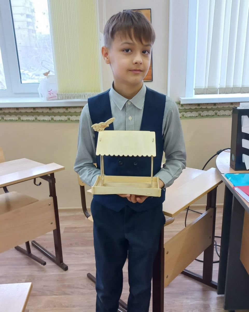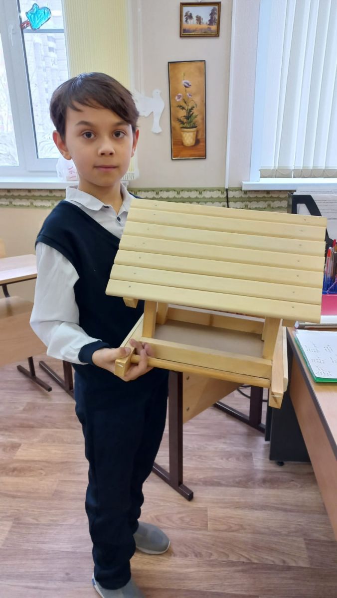 Килькеев Артур, ученик 4"В" класса принимает участие в экоконкурсе:"Накормим птиц зимой! " в номинации "кормушка".