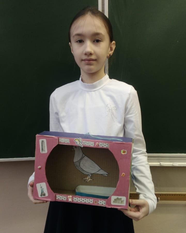Ученица 4"А" класса, Косенкова Лиза принимает участие в экоконкурсе:"Накормим птиц зимой!" в номинации "кормушка".