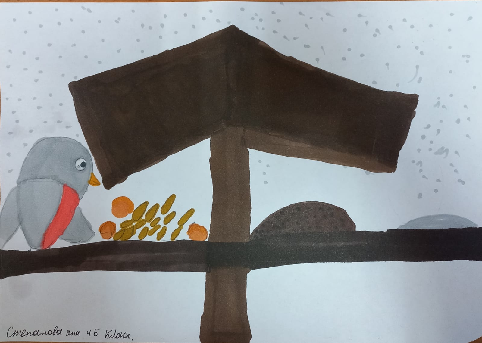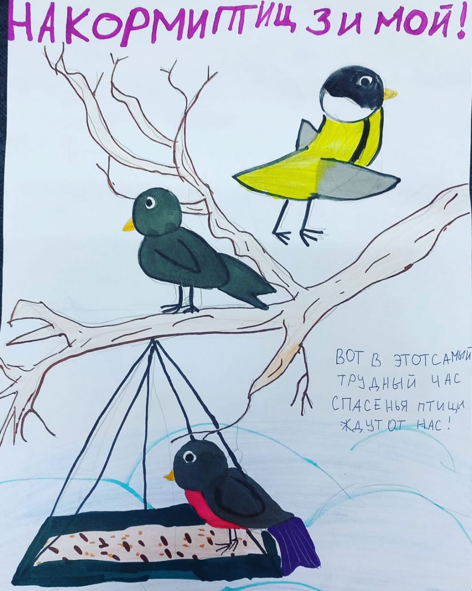 Степанова Яна, ученица 4"Б" класса принимает участие в экоконкурсе :"Накормим птиц зимой! " в номинации "рисунок".