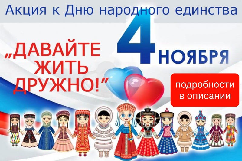 Уважаемые учащиеся и родители! Приглашаем Вас принять участие в онлайн-акции :"Давайте жить дружно ", посвящённой Дню народного единства.
