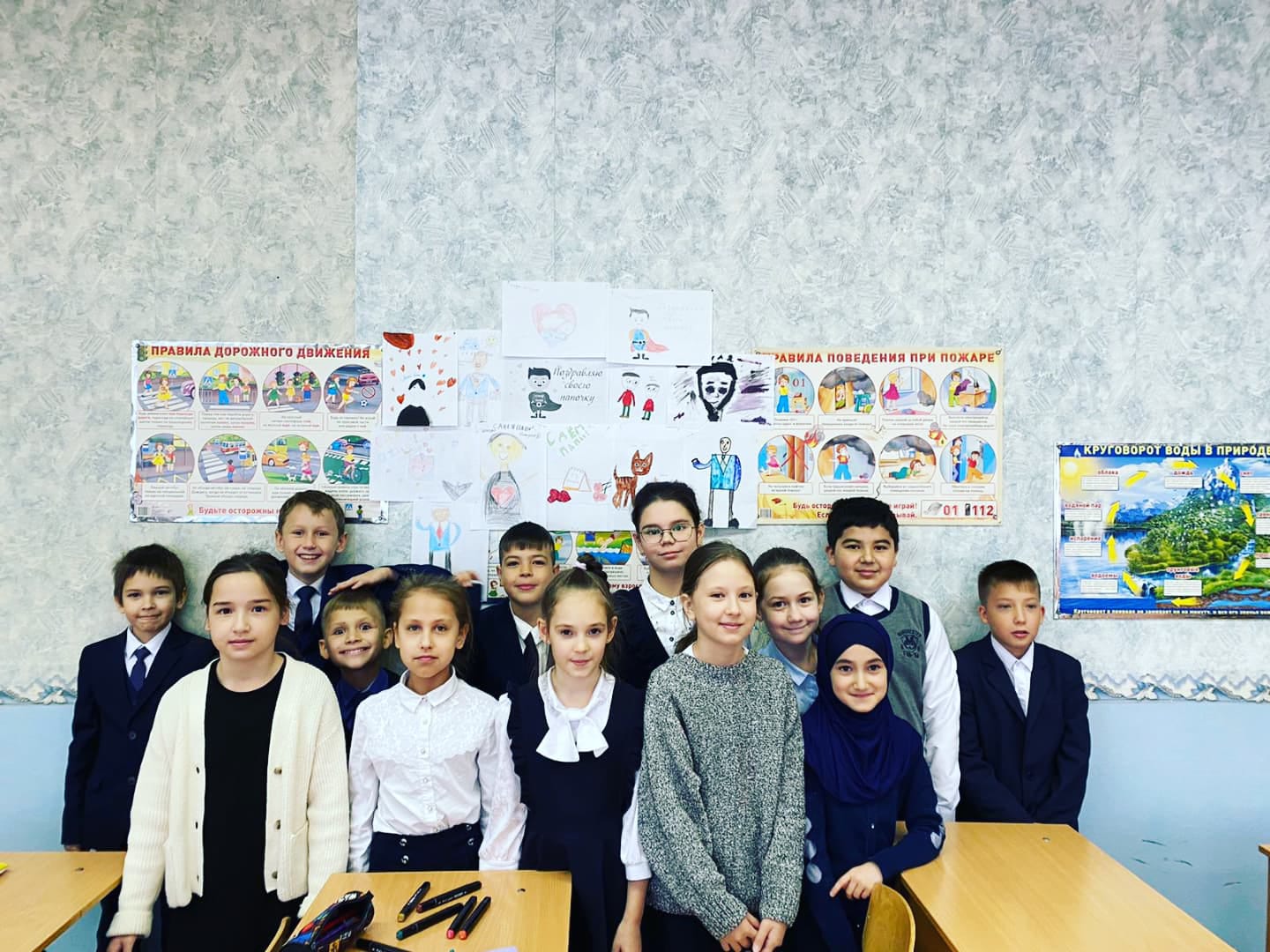 Ученик 4"В" класса Килькеев Артур, принимает участие в тематическом мероприятии, в рамках проведения "Дня отца" по тематике :"Папина улыбка".