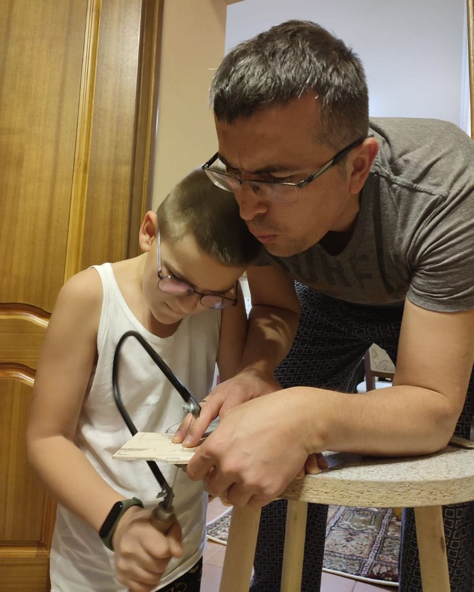 Ученик 5"Б" класса Демир Дениз, вместе с папой принимают участие в тематическом мероприятии, в рамках проведения "Дня отца" по тематике :"Отец-образец для подражания " ,"Папин совет".