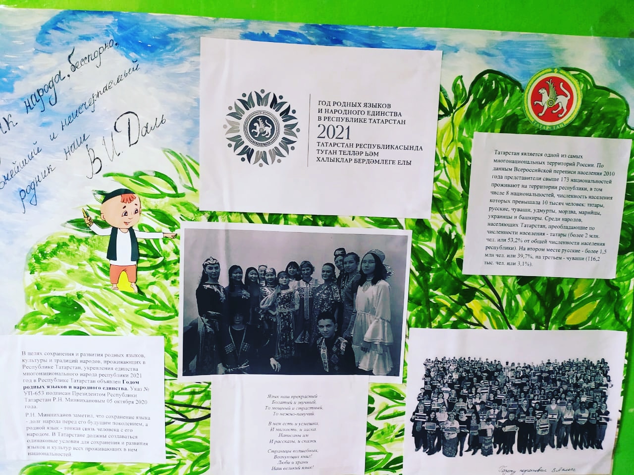 Учащиеся 8 "А" класса выпустили стенгазету, посвящённую "Году родных языков и народного единства в Республике Татарстан!"