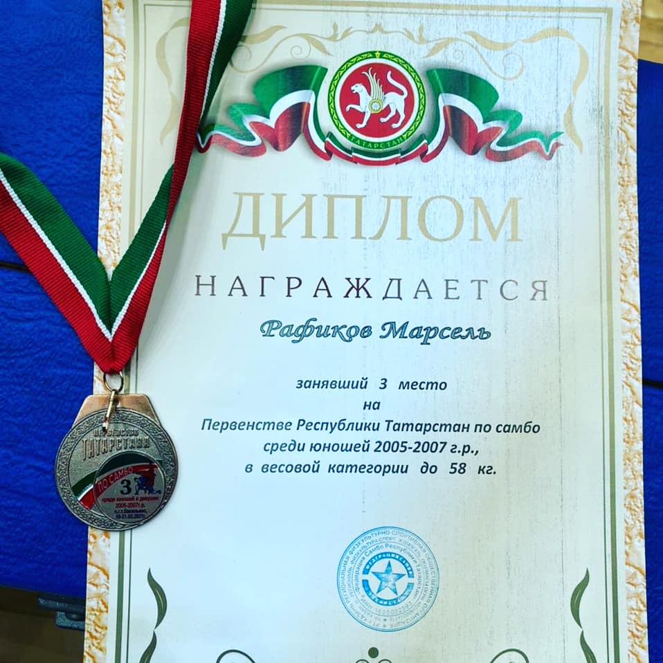 Поздравляем ученика 9"Б" класса Рафикова Марселя с ПОБЕДОЙ на Первенстве Республики Татарстан по самбо среди юношей 2005-2007 г.р.