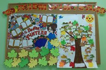 Утром всех учителей ожидал сюрприз,приготовленный родительскими комитетами совместно с детьми. Около кабинетов были вывешены праздничные стенгазеты,кленовые листья с пожеланиями.Каждое поздравление было лучше другого.