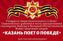 Учащиеся Авиастроительного и Ново-Савиновского района запускают акцию "Казань поет о победе". Для участия необходимо: Записать видеоролик с исполнением песни о Нашей Победе, выложить ролик в Instagram на своей странице с хештегом #школа143 #КазаньПоетоПобеде @mboushkola143