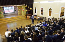 14 ноября состоялась встреча учащихся 8 - 11 классов школ Ново - Савиновского района с Чаллых Е.В. полковником, кандидатом экономических наук, доцентом ВУНЦ ВВС "Военно-воздушной академии им.проф. Н.Е. Жуковского и Ю.А. Гагарина". В рамках встречи учащиеся получили информацию об обучении в академии, специальностях, необходимых экзаменах для сдачи, а также об учебе в данном учебном заведении.