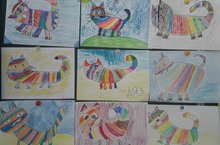 Учащиеся 2Б класса на уроке ИЗО впервые используя восковые мелки, рисовали "Портрет стилизованного кота".