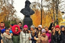 Литературные достопримечательности Казани посетили учащиеся восьмых классов. Маршрут прогулки по осенней Казани включал посещение памятников русским писателям и поэтам.