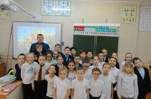 На классный час был приглашен подполковник внутренней службы безопасности Струнов Дмитрий Александрович. Он подробно объяснял ученикам действия при работе в интернете, и провел беседу на тему "Медиаграмотность как основа кибербезопасности" -