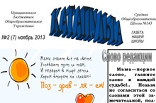 Свежий номер школьной газеты "Катапульта" 24.11.2013
