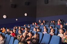 Дети пришкольного лагеря "Улыбка " до обеда посетили кинотеатр "Синема 5".