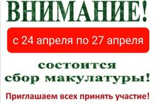 В нашей школе с 24 апреля по 27 апреля (ПОНЕДЕЛЬНИК-ЧЕТВЕРГ) будет проводиться сбор макулатуры!!!