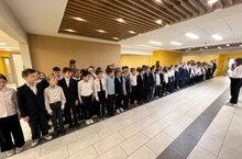 Также по традиции на 1 этаже школы прошла линейка для учащихся 3-х классов с исполнением Гимнов РФ и РТ.