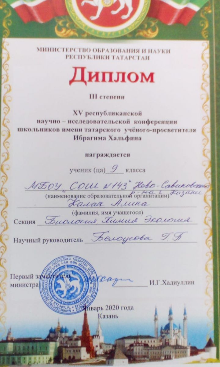 МБОУ «Средняя общеобразовательная школа №143 с углубленным изучением отдельных предметов» Ново-Савиновского района г. Казани
