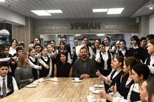 Встреча с главным Дедом Морозом! От новогодних праздников не осталось уже и следа, а в студии ресторана «Урман» сегодня состоялась встреча с главным Дедом Морозом Республики. Бибишев Владимир Леонардович - сценарист, поэт-песенник, руководитель театральных студий, Заслуженный работник культуры Татарстана был сегодня в роли мудрого собеседника с лицеистами «Ресурса»! На встрече звучало много песен, как сочиненных Владимиром Леонардовичем, так и исполняемыми нашими учениками. Вокальный подарок преподнесли гостю пятиклассники Галиев Эмиль и Макарова Вера. Владимир Леонардович подарил нам яркое общение, мудрые мысли, несколько креативных идей и пожелал «Ресурсу» встретить 35-летний юбилей в творческом развитии!