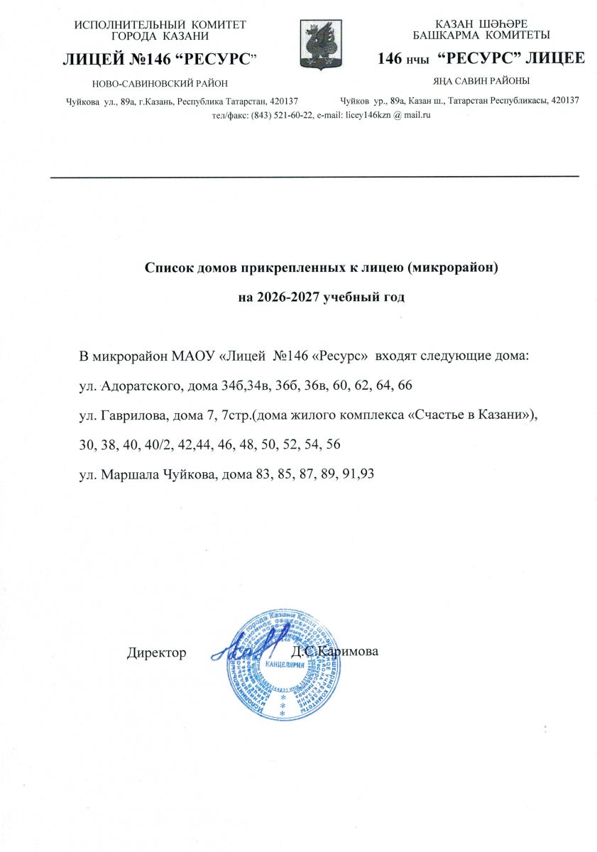 Приказ МАОУ «Лицей №146 "Ресурс"» о приеме детей в 1 класс 2026-2027г.