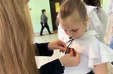Ученики рассказали о значении этого знака отличия: чёрный и оранжевый цвета символизируют дым и пламя войны, а сама ленточка – связь поколений и благодарность ветеранам. После небольшого рассказа ребята раздали ленточки всем желающим, напоминая о том, как важно хранить память о великом подвиге нашего народа.