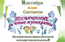 18 октября в 14.00 мы приглашаем наших первоклассников и их родителей на большой музыкальный праздник " Посвящение в юные музыканты"!