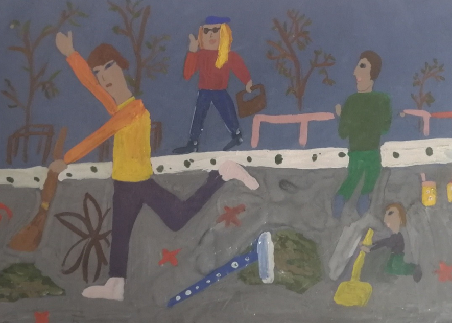 Композиция - 1 урок (завершение работы акварелью\гуашью, детализация) (материалы: гуашь\акварель, кисти, баночка, палитра)