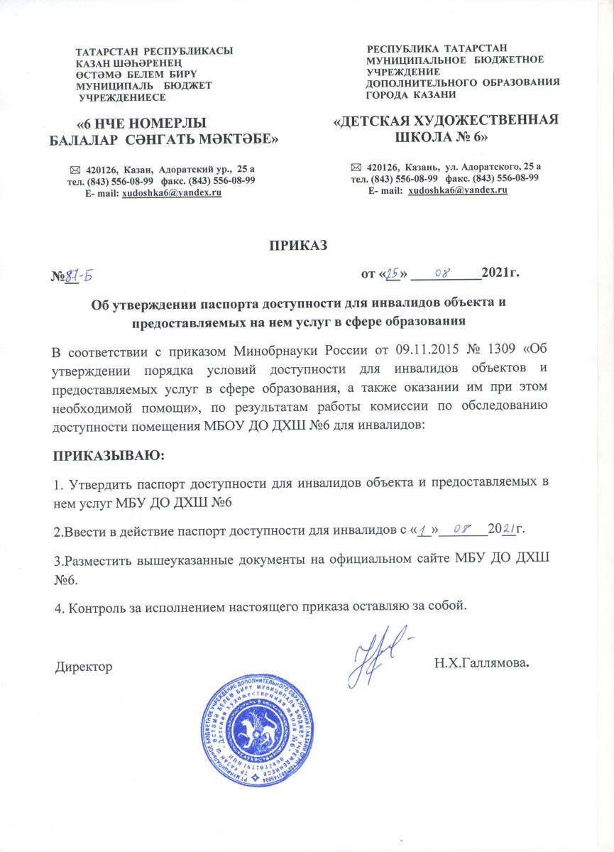Приказ об утверждении паспорта доступности