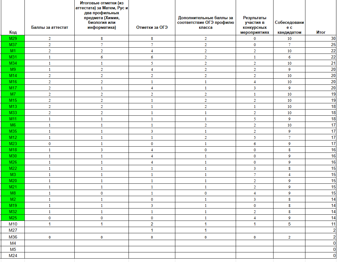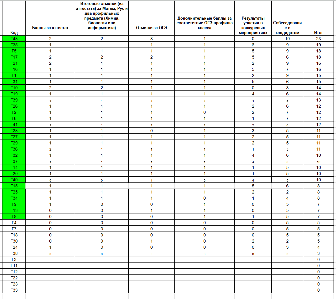 Прием в 10 классы завершен