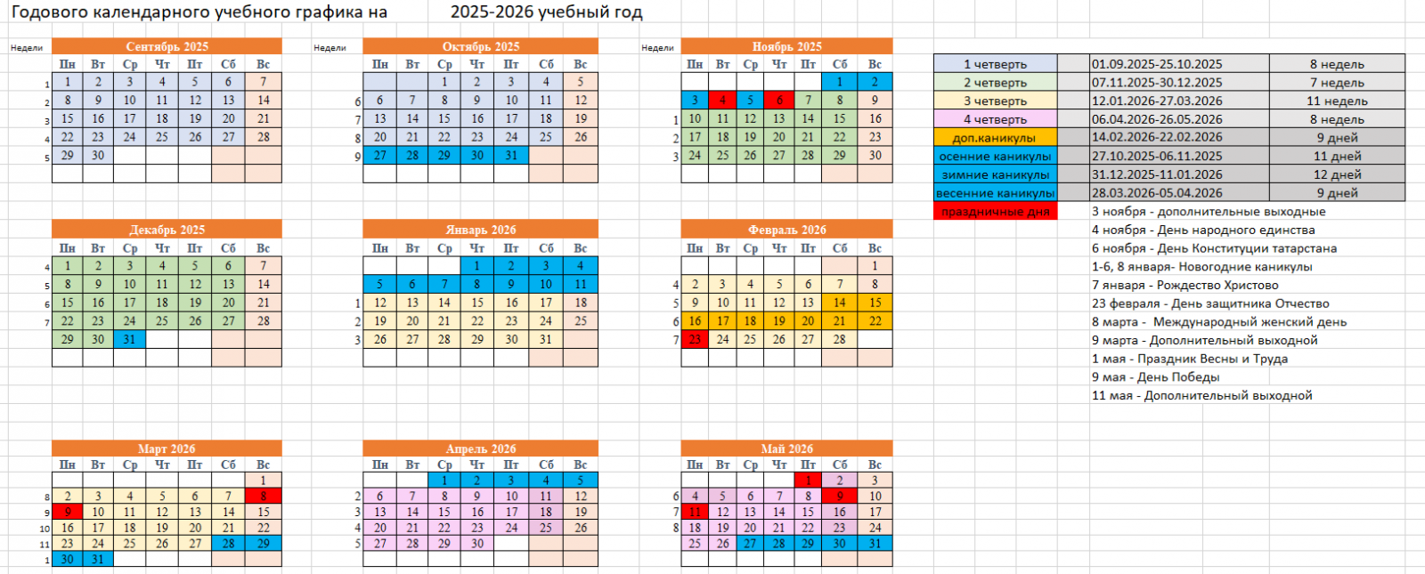 Проект годового календарного учебного графика на 2025-2026 учебный год