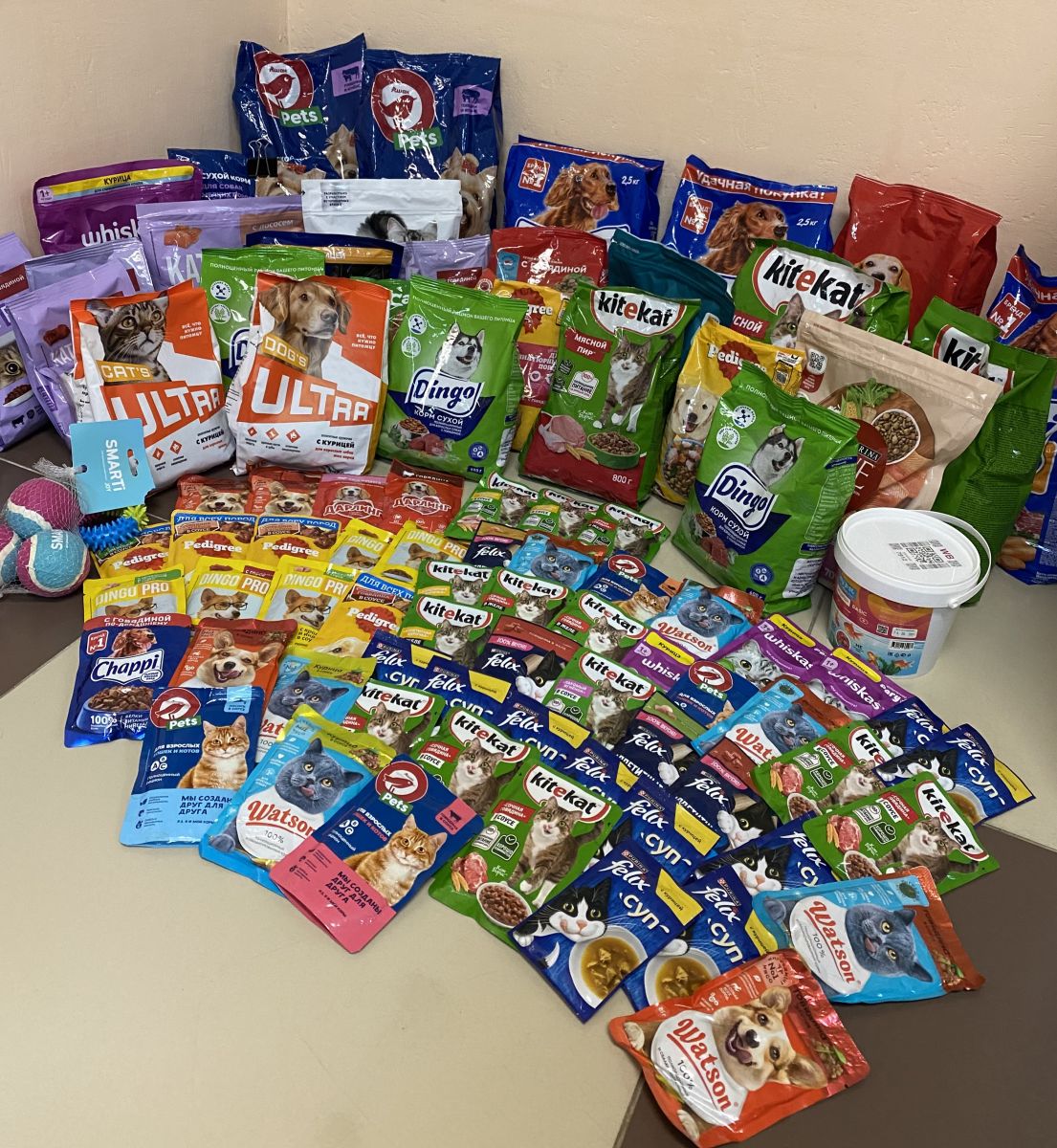 Силами детей, родителей и сотрудников детского сада для приюта были собраны и переданы корма для приюта и бездомных животных.