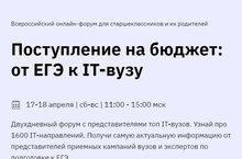 17-18 апреля пройдет бесплатный Всероссийский онлайн-форум «Поступление на бюджет: от ЕГЭ к IT-вузу»
