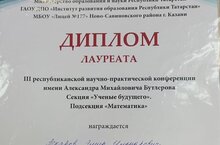 Ученик 8 А класса, Камалов Руслан принял участие в Республиканской научно - практической конференции с международным участием имени А.М.Бутлерова конференции и награжден дипломом 2 степени. Поздравляем!!! Так держать!!!
