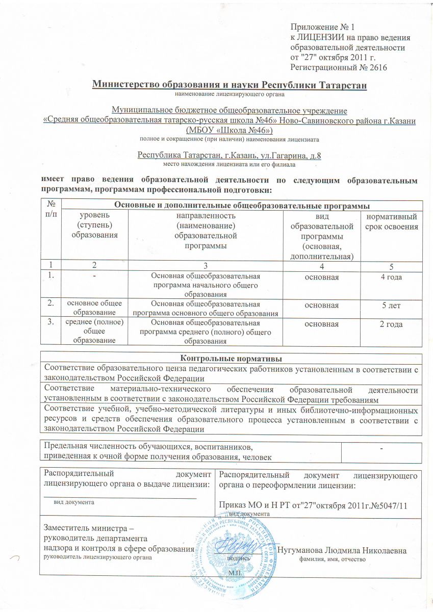 МБОУ «Средняя общеобразовательная татарско-русская школа №46» Ново-Савиновского района г. Казани (присоединение к СОШ №31)