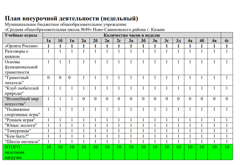 План внеурочной деятельности на уровень начального общего образования на 2025-2026 уч.год