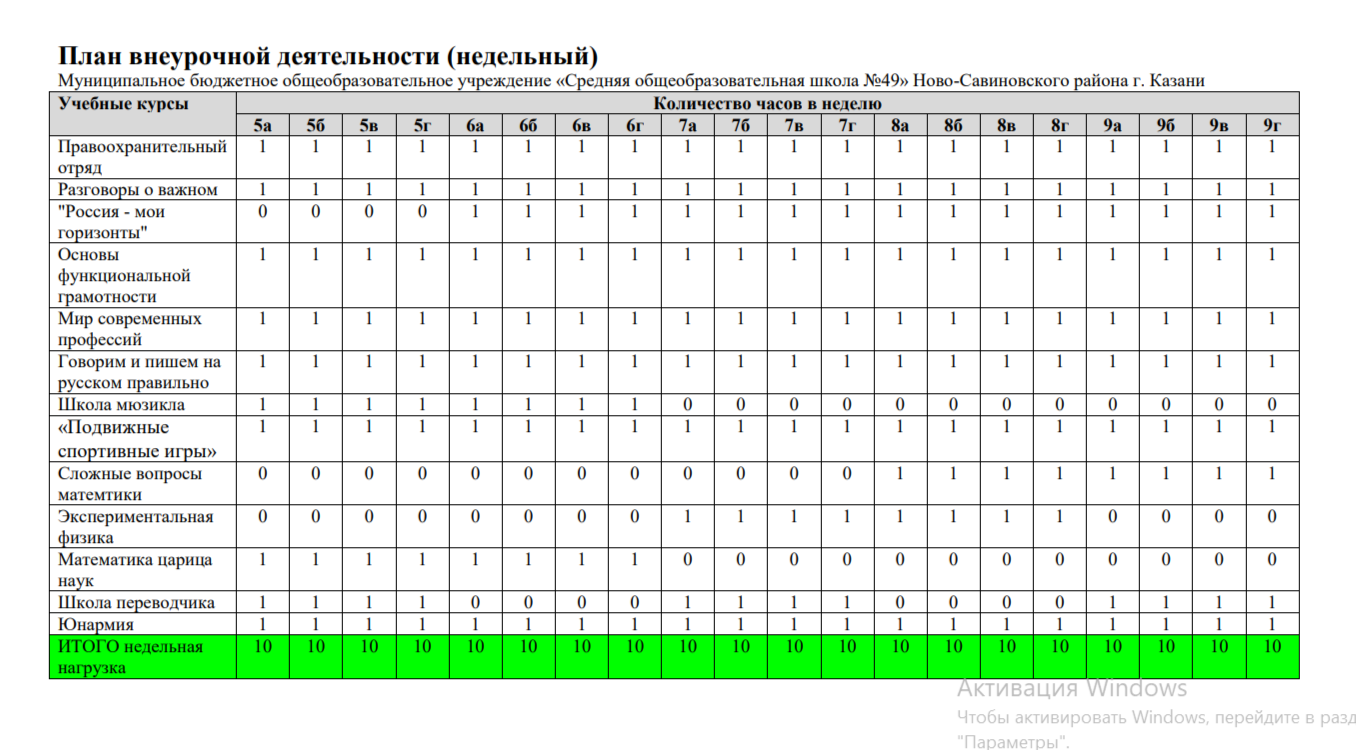 План внеурочной деятельности на уровень основного общего образования на 2025-2026 уч.год