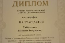 25 января прошла Республиканская олимпиада школьников по географии. Ученица нашей школы Хайбуллина Раушана (8а) стала призёром. Благодарность в подготовке к олимпиаде выражаем учителю географии Красавкинй Н.Р.