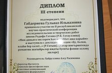 13 апреля учащиеся 8б класса Габдериева Гульназ и Насибуллина Лейла приняли участие во II республиканской научно-практической конференции исследовательских и творческих работ имени Радифа Гаташа и были награждены дипломами 3 степени. Руководитель: Хайруллина А.Р.