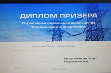 Юркин Олег, ученик 10а класса, стал призёром в отраслевой олимпиаде школьников "Первые шаги в энергетике". Руководитель: Ишмеева Л.Х. Поздравляем!