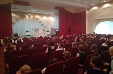 Учащиеся начальных классов посмотрели моноспектакль, который состоял из очень веселых, добрых, поучительных и ироничных историй о школьниках и их учебе,
