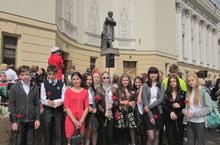 Учащиеся школы приняли участие в возложении цветов к памятнику Пушкину у театра оперы и балета.