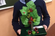 Ученик 2б класса Беляков Амир принял участие в конкурсе поделок по произведениям Фаниса Яруллина и выполнил поделку «Алмалар пешкэн чакта»