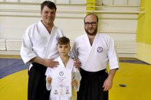Поздравляем Хохлова Игоря, ученика 3а класса с успешной сдачей экзамена по айкидо на желтый пояс!