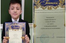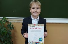 Ученик 1а класса Колсанов Константин награждён грамотой за 1 место в школьном конкурсе "Грамотей" на лучшую тетрадь по русскому языку среди первых классов. Молодец!