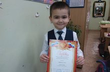 Ученик 1б класса Гаффаров Алмаз награжден грамотой за 1 место в школьном конкурсе осенних поделок.