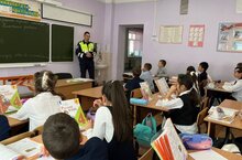 Инспектор ГИБДД Гарифуллин А.Н. посетил нашу школу. Он напомнил ученикам о правилах дорожного движения, езды на самокатах и велосипедах. Предупредил детей об ответственности за нарушение правил дорожного движения. Гарифуллин А.Н. ответил на вопросы учащихся и пожелал всем здоровья и безопасности на дорогах.