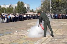 Сегодня в нашей школе прошла учебная эвакуация. Школа была полностью эвакуирована. Ученикам был проведен и продемонстрирован инструктаж о тушении очага возгарания, а также было показано как правильно надевать экипировку и противогаз