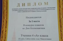 4а класс занял 1 место в конкурсе плакатов ко Дню Космонавтики. Молодцы!