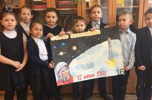 Ученики 1Б класса приняли участие в конкурсе стенгазет посвящённому Дню космонавтики