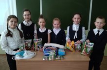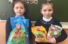 Ученики 1Б класса приняли активное участие в акции помощи приюту бездомных животных в с. Столбище