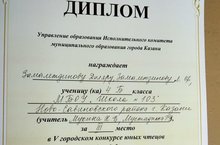 Поздравляем учеников 1Г класса Шакирову А, Исмагилова Э, Чепланова Д, Шишкина С, Тужилина А, Ахмадалиева А, с участием во Всероссийской онлайн-олимпиаде по математике ЗАВРИКИ январь-февраль 2019! Они награждены почетными грамотами и сертификатами участников.