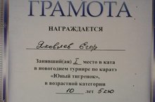 Ученик 4а класса Яковлев Егор занял 1 место в новогоднем турнире по каратэ "Юный тигрёнок". Молодец!